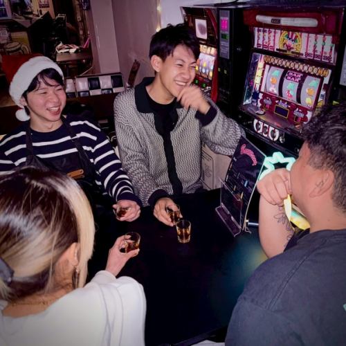 ついついハマってしまう!スロット設備や、カウンターにはバーメイトも★【貸切・飲み放題・喫煙・居酒屋・高田馬場・早稲田・西早稲田・ダーツ・ビリヤード・パーティー・宴会・忘新年会・歓送迎会・追いコン・新歓・誕生日・朝まで・始発まで・5時まで】
